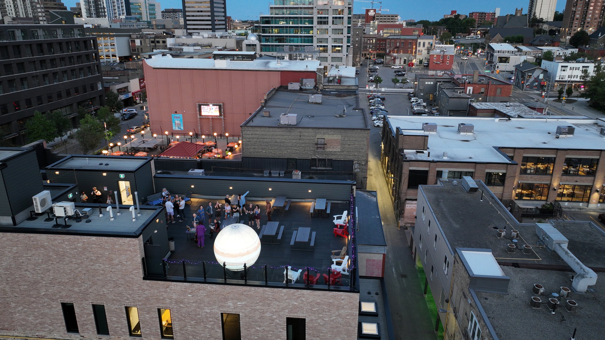 Drone footage from Lone Drone Solutions for rooftop concert at Art Hop, 2023